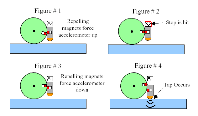 Figure 1 below shows the accelerometer being raised by magnets. (Note that